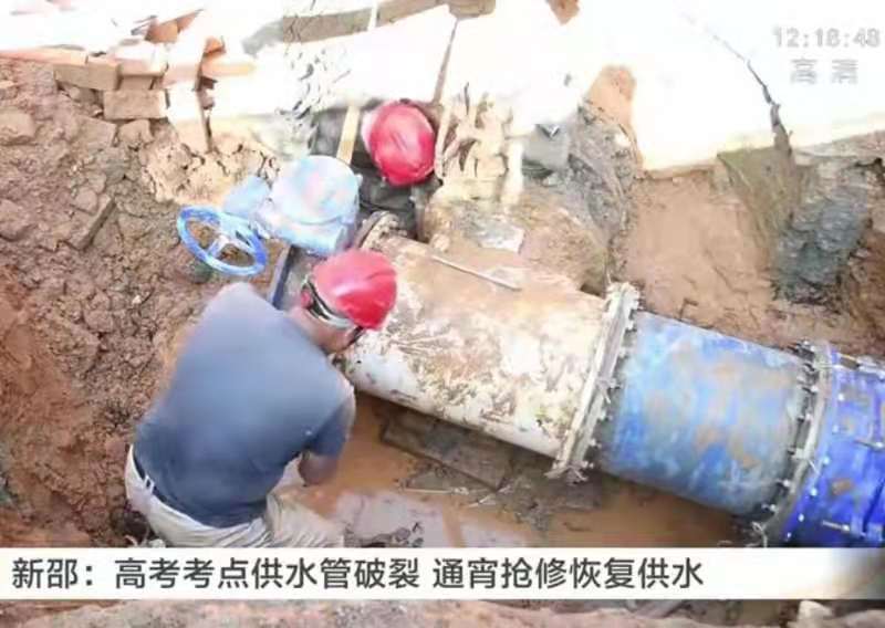 2021年6月5日上午新邵县大坪蔡锷路与七秀路交汇处高考考点附近水管炸裂,大坪区域用水告急。维修股全体人员立即投入到抢修工作当中,通过通宵的抢修,6月6日上午9点多顺利供水。