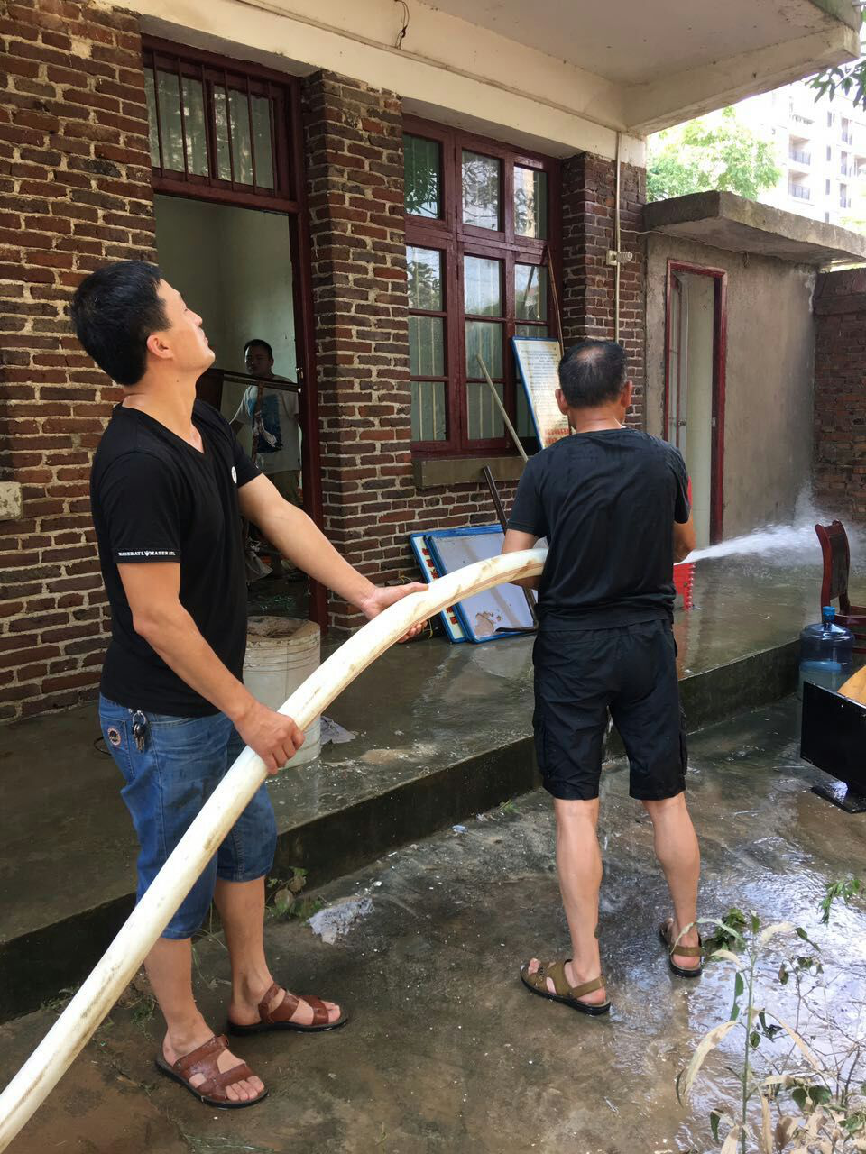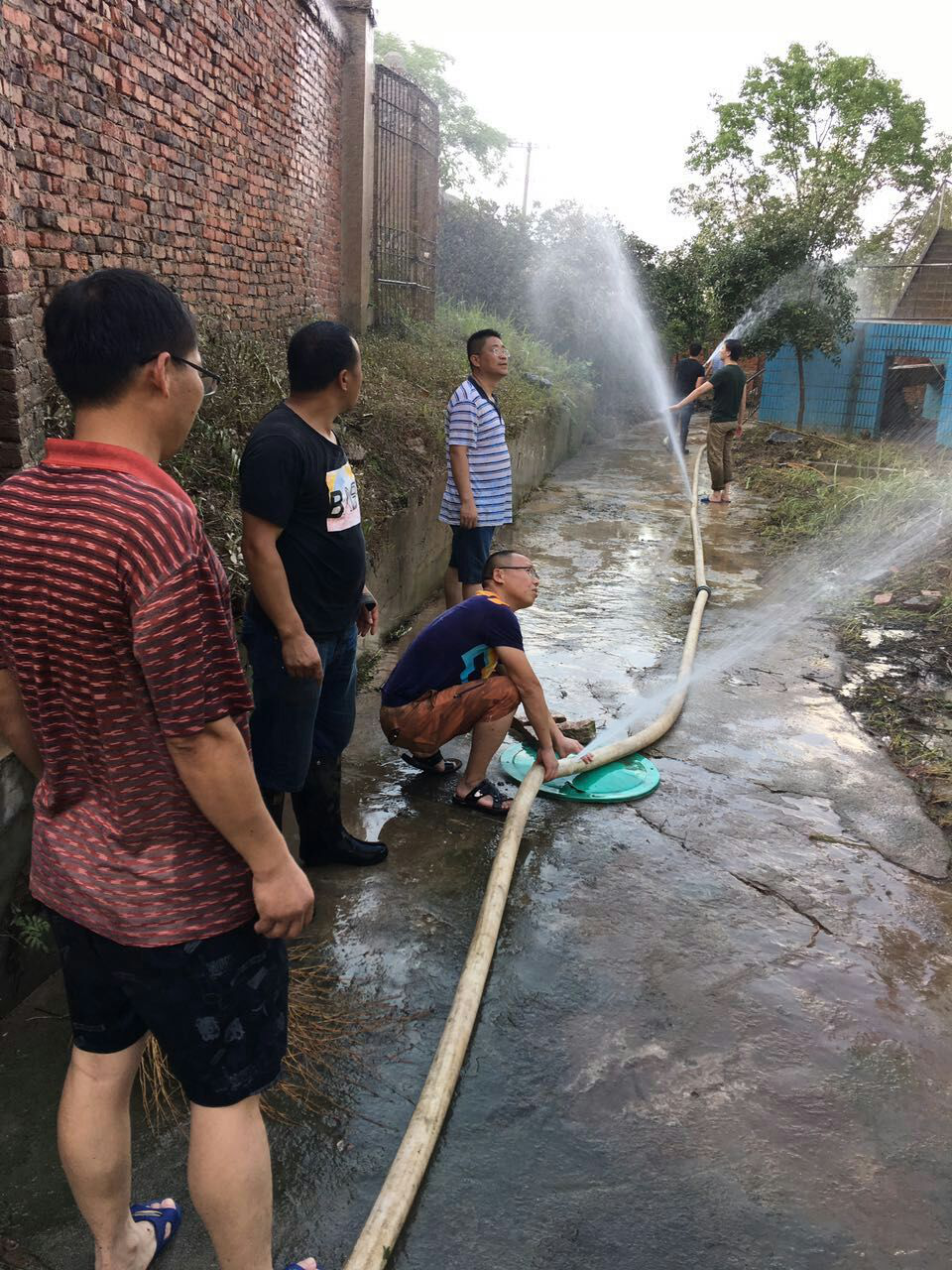 及时恢复生产秩序,尽力保障生产生活。我公司工作人员不畏酷暑,积极配合城管、交通、水务、住建等部门,协助受灾街道加快恢复市容市貌和供水设施。下图为我公司人员灾后重建现场图。