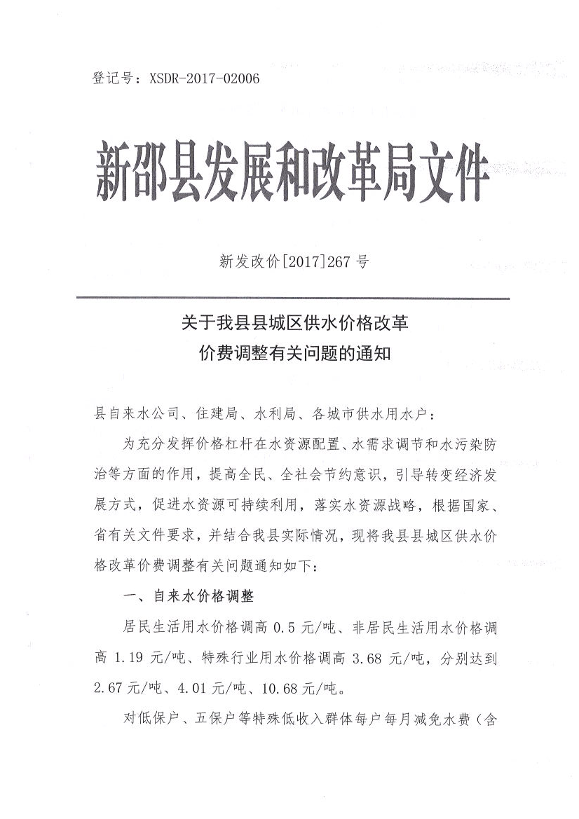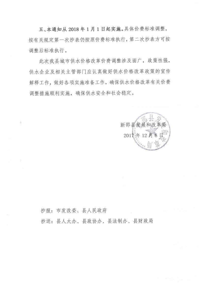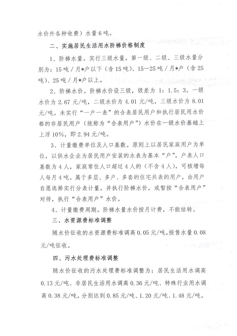 关于我县县城区供水价格改革价费调整有关问题的通知