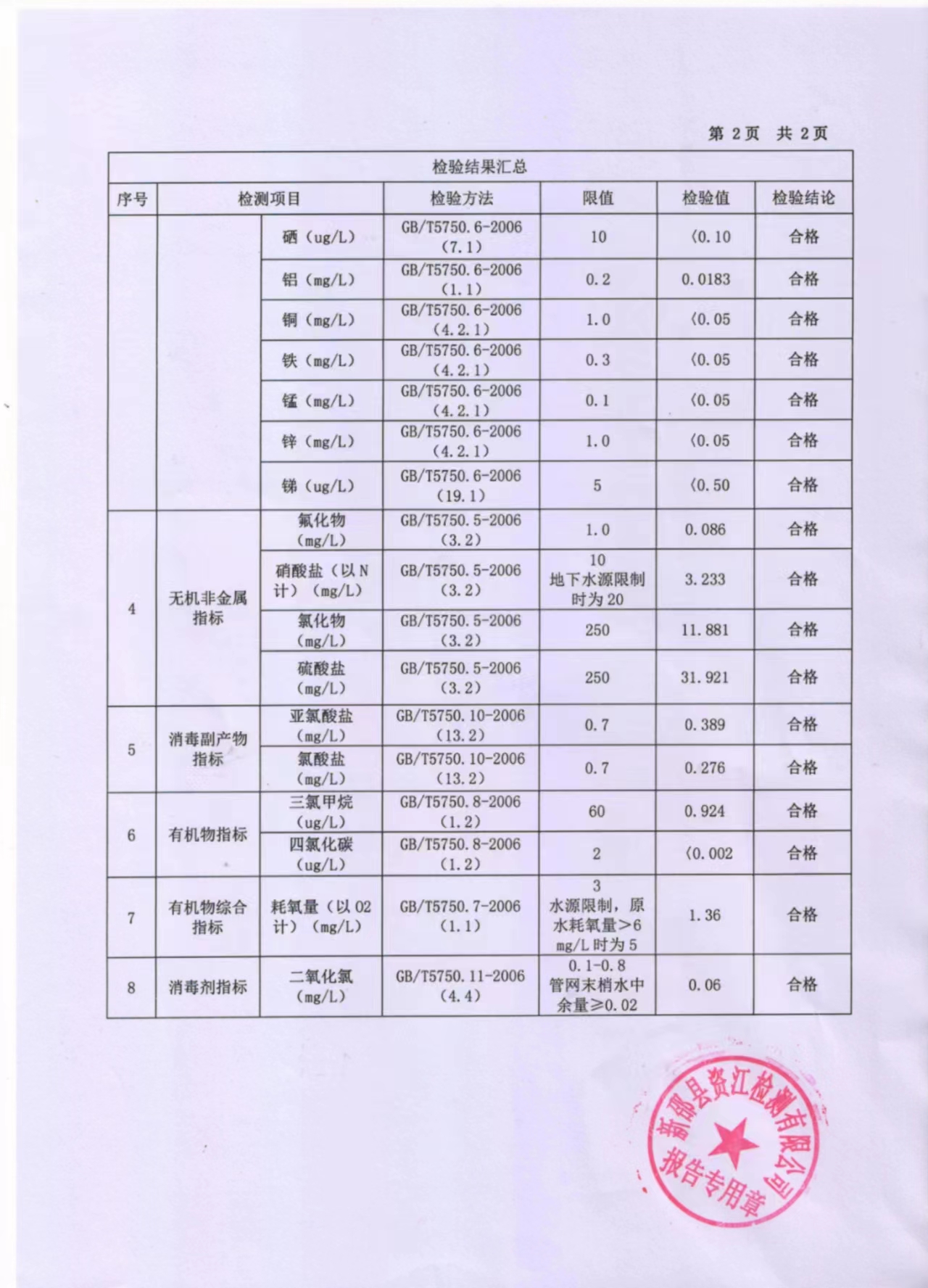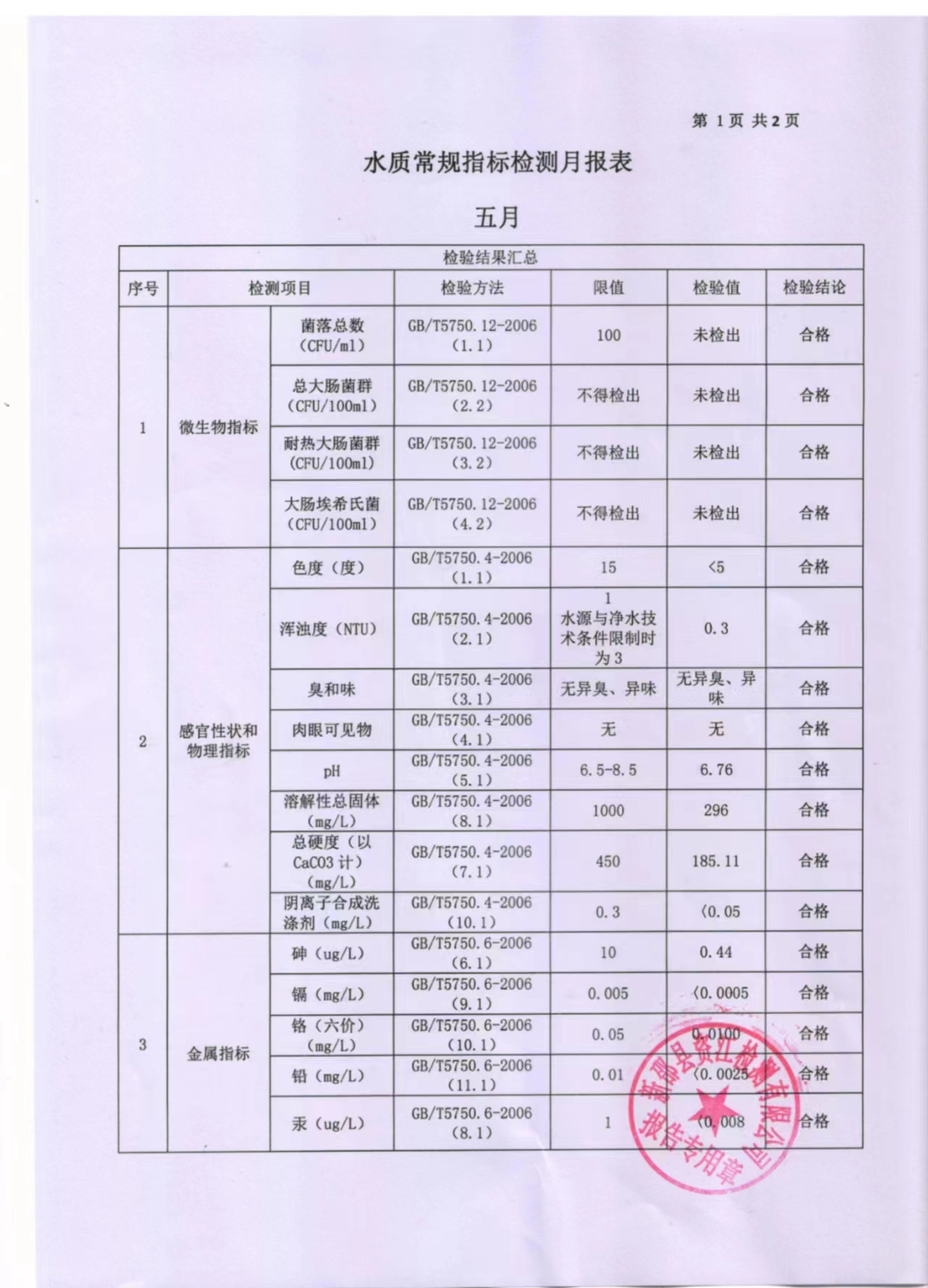 2023年5月水质报表