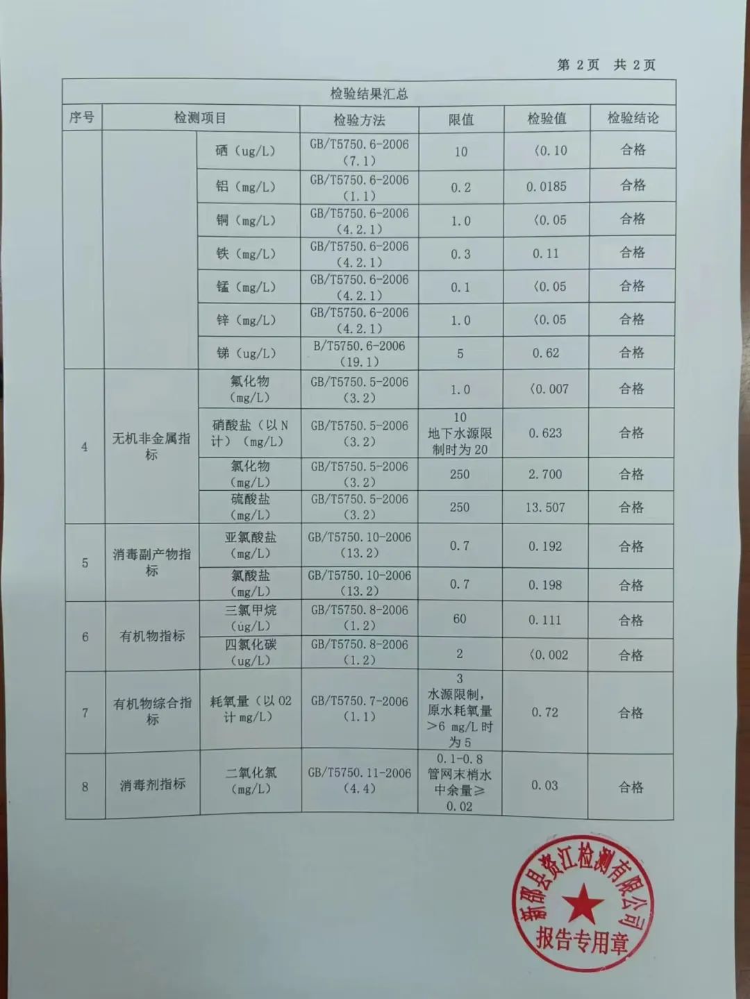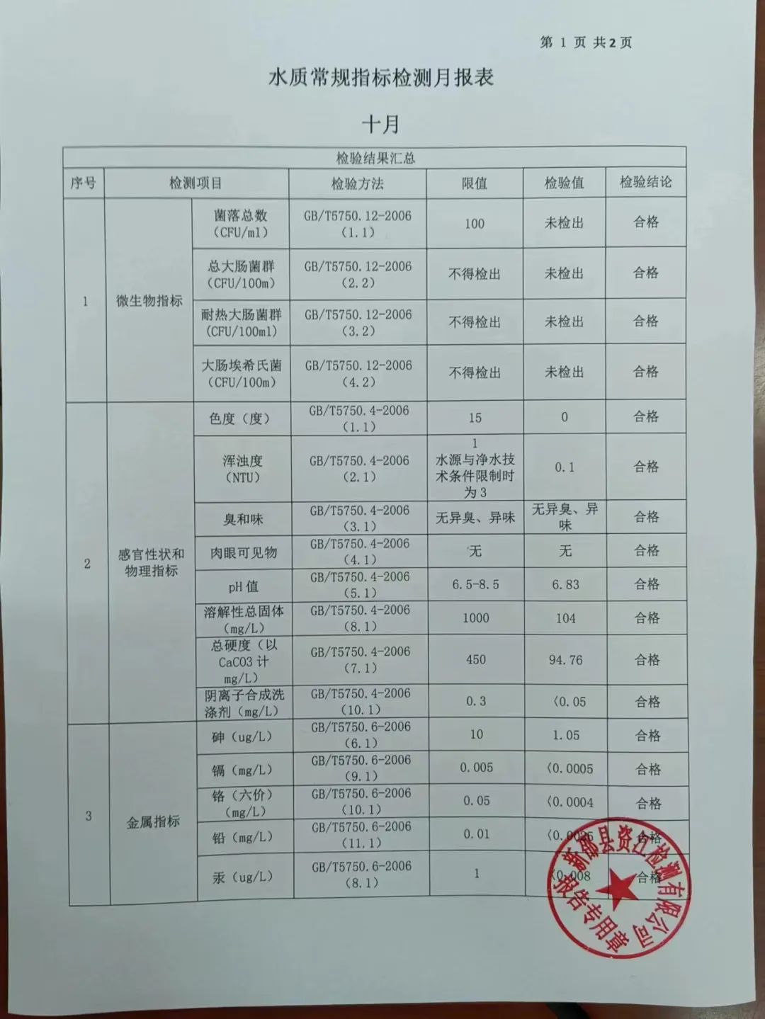 2022年10月水质报表